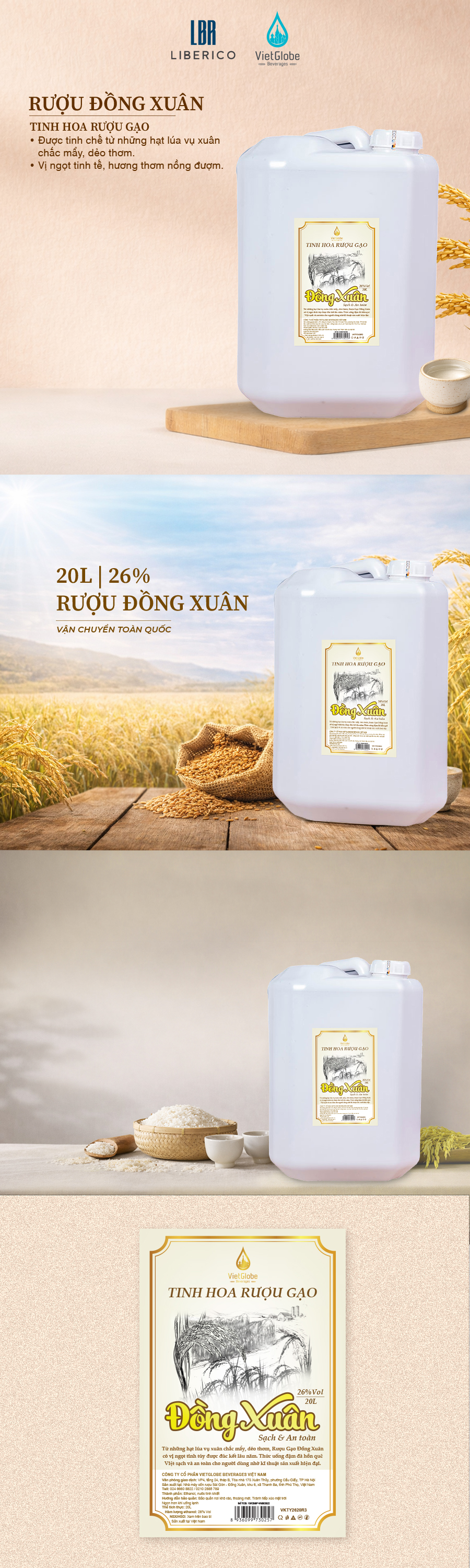 Rượu Gạo Đồng Xuân là dòng rượu truyền thống được tinh chế từ những hạt lúa vụ xuân lên men với vị ngọt tinh tuý được đúc kết lâu năm.
